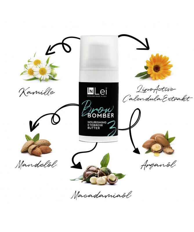 Schließlich versorgt die Rezeptur der innovativen InLei® BROW BOMBER-Butter, die dem revolutionären Verfahren den Namen gab, die Brauen langanhaltend mit wertvollen